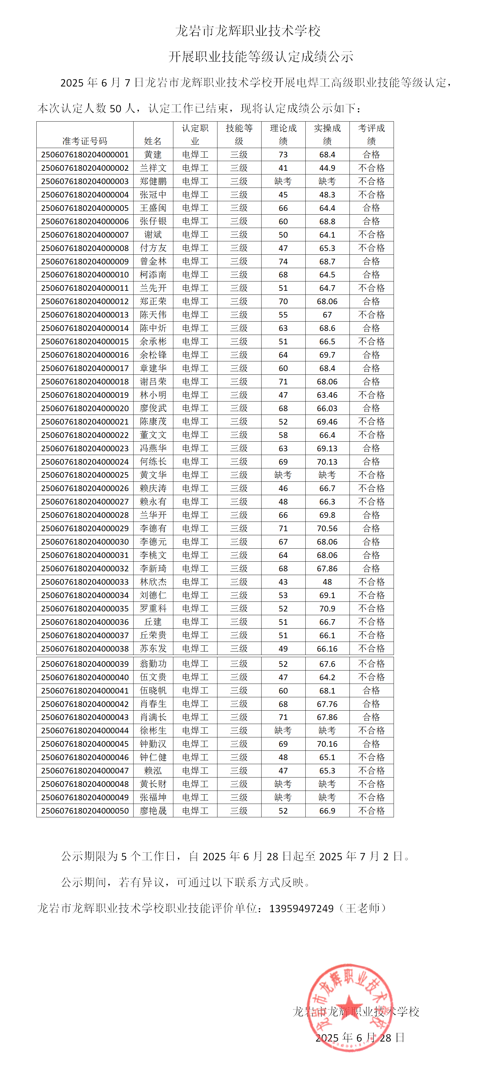 成績(jī)公示2025.6.7
